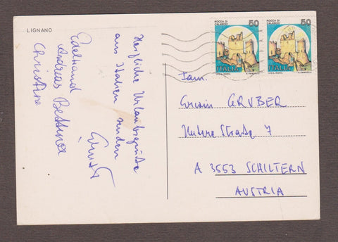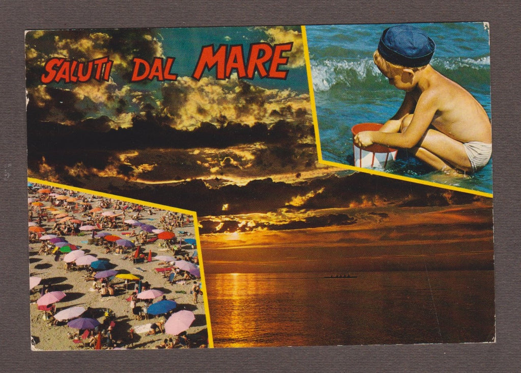 AK Saluti dal Mare. Lignano. Gelaufen. Großformat. Zustand: Ecken angestoßen.