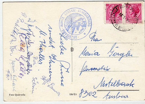 AK Saluti dal Monte Lussari. Gelaufen 1977. Großformat. Verlag: Querzola. Nummeriert: 124/Q3. Zustand: rechtes unteres Eck geknickt, sonst leichte Randläsuren.