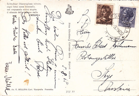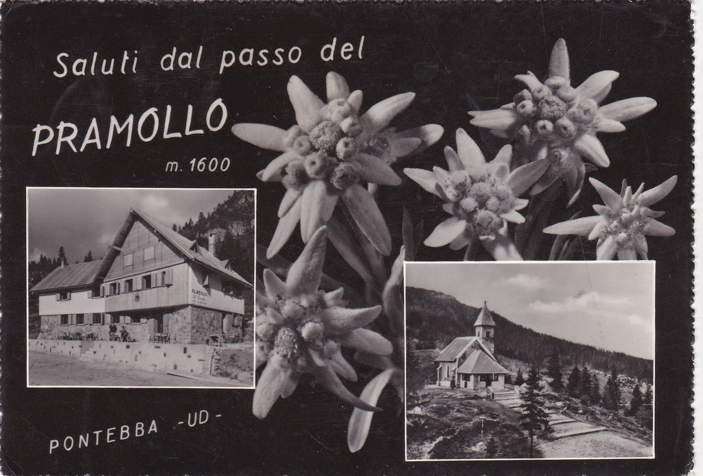 AK Saluti dal passo del Pramollo. Pontebba. Gelaufen. Großformat. Verlag: Bellina. Nummeriert: 333 22. Zustand: Ecken angeknickt, sonst leichte Läsuren.