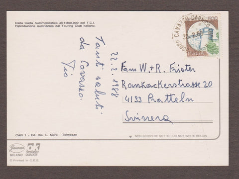 AK Saluti dalla Carnia. Gelaufen 1988. Großformat. Verlag: Moro. Nummeriert: CAR 1. Zustand: gut.