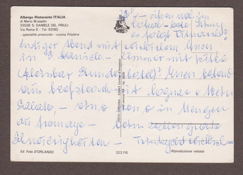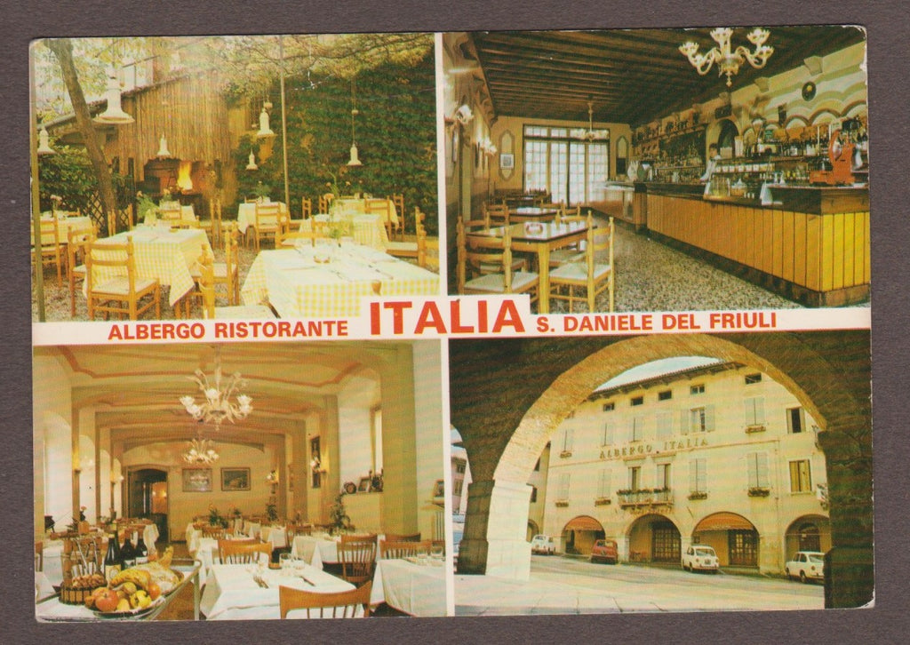 AK San Daniele del Friuli. Albergo Ristorante Italia. Ungelaufen. Großformat. Verlag: D'Orlando bzw. Foto Ghedina. Nummeriert: 323.116. Zustand: stärker bestoßen.
