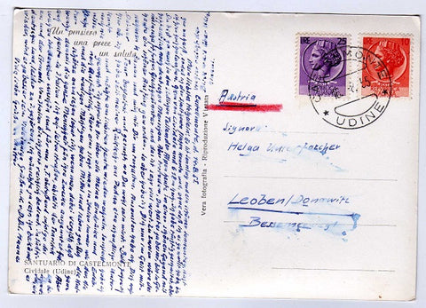 AK Santuario di Castelmonte m. 618. Cividale. Gelaufen 1955 in Castelmonte. Großformat. Zustand: Ecken und am Rand etwas bestoßen, linkes oberes Eck geknickt.
