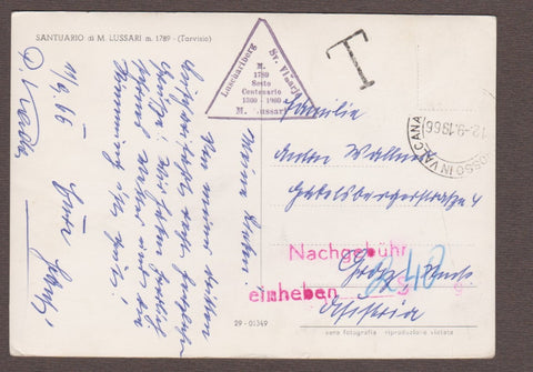 AK Santuario di M. Lussari. Gelaufen 1966, aber Briefmarke wurde entfernt. Großformat. Zustand: stärker bestoßen.