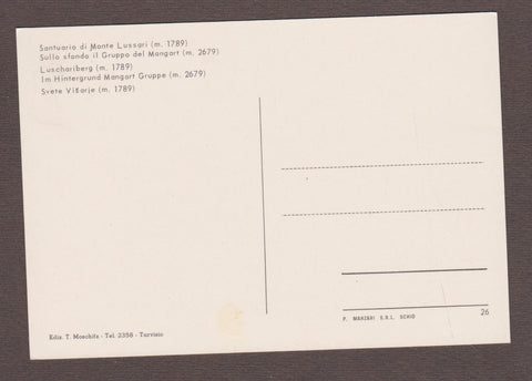 AK Santuario di Monte Lussari. Sullo Sfondo il Gruppo del Mangart. Ungelaufen. Großformat. Verlag: Moschitz. Nummeriert: 26. Zustand: gut.