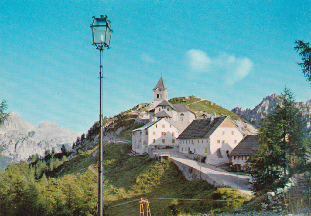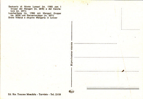 AK Santuario di Monte Lussari con i Gruppi del Mangart e del Cacciatore. Ungelaufen. Großformat. Verlag: Moschitz. Zustand: gut.