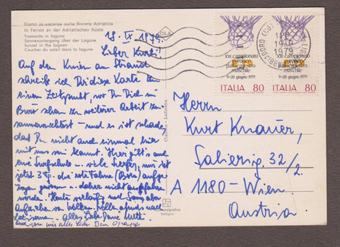 AK Siamo in vacanze sulla Riviera Adriatica. Lignano ? Gelaufen 1979 in Lignano. Großformat. Verlag: Cigaina. Zustand: gut.