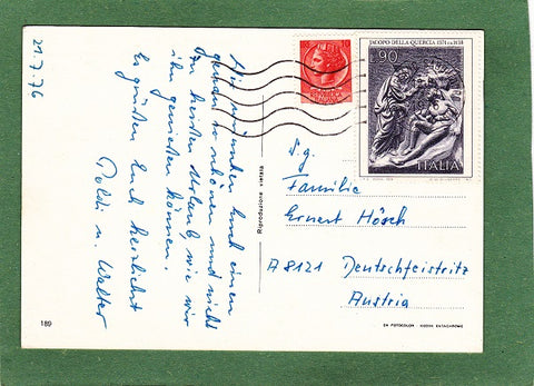 AK Souvenir Lignano. Gelaufen 1976 in Lignano Sabbiadoro. Großformat. Nummeriert: 189. Zustand: Ecken leicht angestoßen bzw. angeknickt, am linken Rand oben etwas bestoßen mit zwei kleinen Einrissen (durch Stempel verursacht).