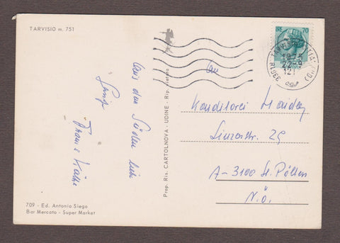 AK Tarvisio. Gelaufen 1975. Großformat. Verlag: Antonio Siega. Bar Mercato. Cartolnova. Nummeriert: 709. Zustand: Ecken etwas angestoßen, sonst leichte Läsuren.