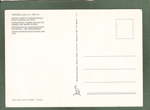 AK Tarvisio. Centro Turistio Internazionale Sport Invernali ed Estivi. Ungelaufen. Format: 15,5 x 11 cm. Verlag: Attisani. Zustand: linkes oberes Eck geknickt, rechtes oberes Eck angeknickt.