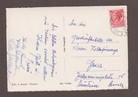 AK Tarvisio - Fusine Laghi con Mangart. Gelaufen 1959. Großformat. Verlag: Rassati. Zustand: gut.