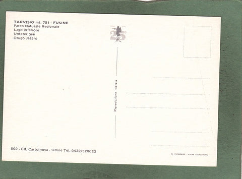 AK Tarvisio – Fusine. Parco Naturale Regionale. Ungelaufen. Großformat. Verlag: Cartolnova. Nummeriert: 502. Zustand: gut, geringe Läsuren.