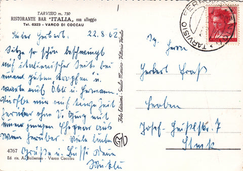 AK Tarvisio - Lago di Fusine. Gelaufen 1962. Großformat. Verlag: Ballerino. Nummeriert: 4767. Zustand: gut, linkes unteres Eck geknickt.