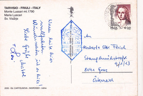 AK Tarvisio. Monte Lussari. Gelaufen. Großformat. Verlag: Cartolnova. Nummeriert: 2032. Zustand: gut.