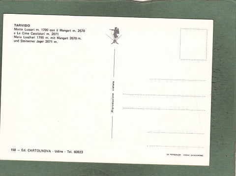 AK Tarvisio. Monte Lussari con il Mangart e Le Cime Cacciatori. Ungelaufen. Großformat. Verlag: Cartolnova. Nummeriert: 158. Zustand: gut,leichte Läsuren.