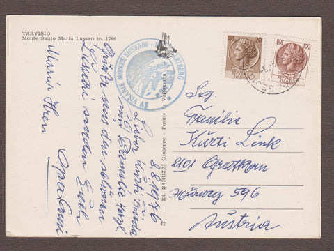 AK Tarvisio. Monte Santo Maria Lussari. Gelaufen 1976. Großformat. Verlag: Baruzzi. Zustand: linkes unteres Eck geknickt, linkes oberes und rechtes unteres Eck angeknickt.