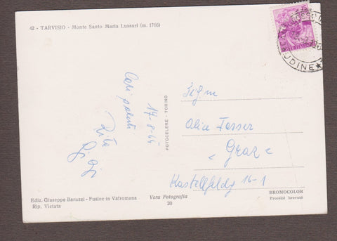 AK Tarvisio - Monte Santo Maria Lussari. Gelaufen. Großformat. Verlag: Baruzzi. Nummeriert: 42 bzw.20. Zustand: leichte Läsuren.