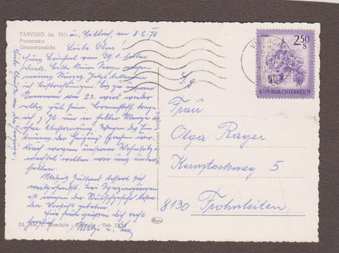 AK Tarvisio. Panorama. Gelaufen 1978. Großformat. Verlag: Moschitz. Zustand: Oberfläche leicht knittrig, Ecken angeknickt bzw. geknickt.