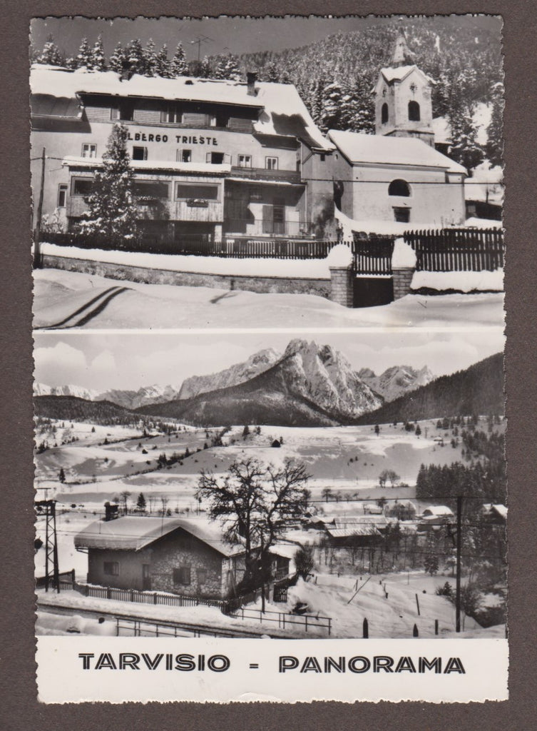 AK Tarvisio - Panorama (Albergo Trieste) Gelaufen 1960. Großformat. Nummeriert: 256x. Zustand: gut, leichte Randläsuren.