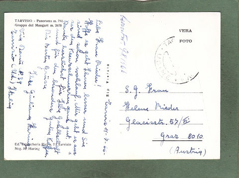 AK Tarvisio. Panorama. Gruppo del Mangart. Gelaufen 1966, aber Briefmarke wurde entfernt. Großformat. Verlag: Tabaccheria Riv. n. 7 Tarvisio. Neg. H. Haring. Zustand: gut, nur leichte Läsuren.