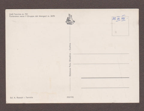 AK Tarvisio. Panorama verso il Gruppo del Mangart. Ungelaufen. Großformat. Verlag: Rassati bzw. Ghedina. Nummeriert: 333/195. Zustand: stärker bestoßen.
