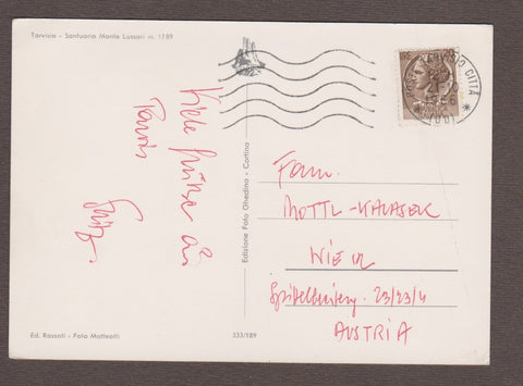 AK Tarvisio - Santuario Monte Lussari. Gelaufen 1966. Großformat. Verlag: Rassati bzw. Foto Ghedina. Nummeriert: 333/189. Zustand: gut, geringe Randläsuren.