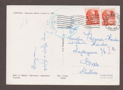 AK Tarvisio - Santuario Monte Lussari. Gelaufen 1962. Großformat. Verlag: Rassati. Nummeriert:15337. Zustand: untere Ecken geknickt, sonst O.k.