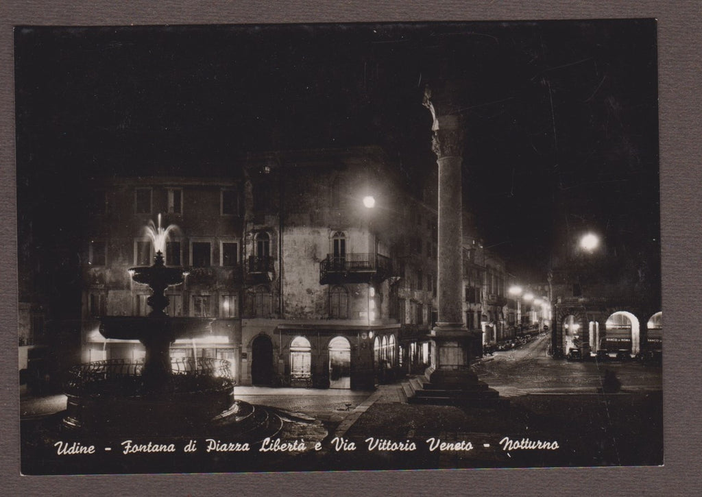 AK Udine - Fontana di Piazza Liberta e Via Vittorio Veneto - Notturno. Ungelaufen. Großformat. Verlag: D. T. Zustand: gut.