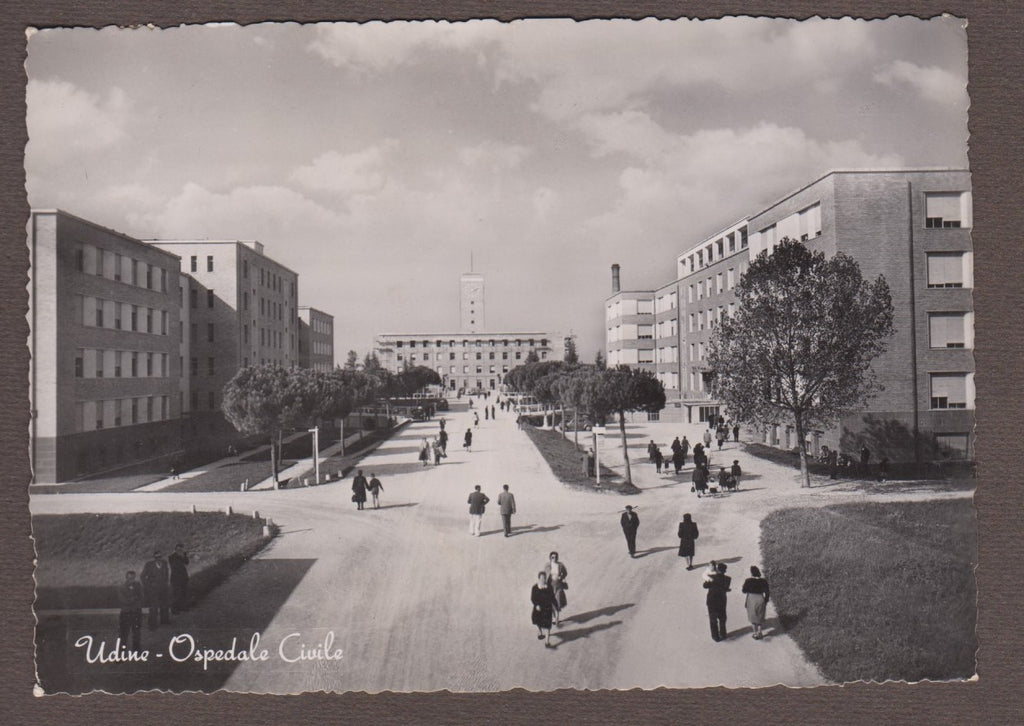 AK Udine - Ospedale Civile. (um1966) Gelaufen 1966. Großformat. Verlag: A.B.U. Nummeriert: 9. Zustand: gut, leichter Knick links der Bildmitte, Ecken etwas angestoßen.
