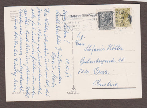 AK Udine. Panorama. Gelaufen 1973. Großformat. Verlag: M.B. Nummeriert: UD 6952/111. Zustand: rechtes unteres Eck geknickt, linke Ecken angeknickt.