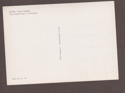 AK Udine - Piazza Liberta. Torre dell'Orologio e il Castello. Ungelaufen. Großformat. Verlag: G.G. - U. Zustand: gut, linkes unteres Eck angeknickt.