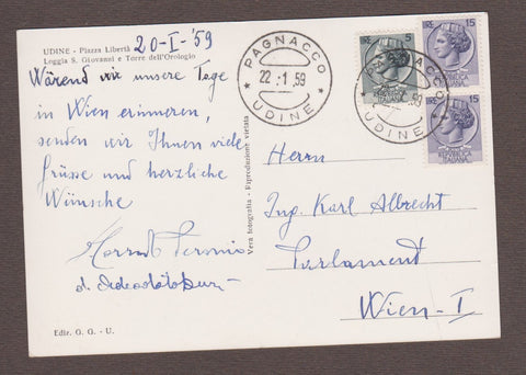 AK Udine - Piazza Liberta. Loggia S. Giovanni e Torre dell'Orologio. Gelaufen 1959. Großformat. Verlag: G.G.- U. Zustand: gut.
