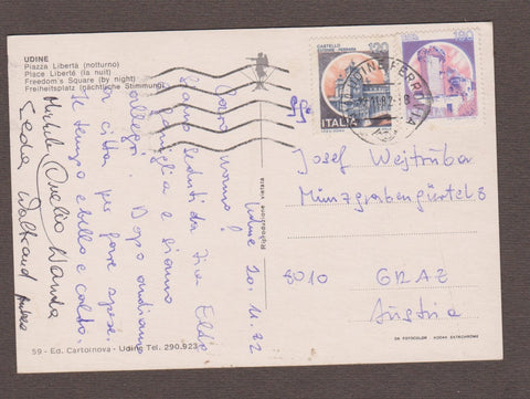 AK Udine. Piazza Liberta (notturno) Gelaufen 1982. Großformat. Verlag: Cartolnova. Nummeriert: 59. Zustand: gut.