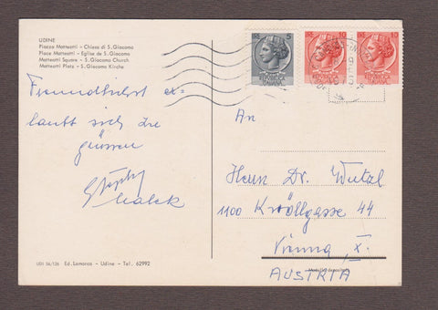 AK Udine. Piazza Matteotti - Chiesa di S. Giacomo. Gelaufen 1975. Großformat. Verlag: Lamarca. Nummeriert: UDI 56/126. Zustand: linkes oberes Eck geknickt, Knick am oberen Rand über dem mittleren Teil.