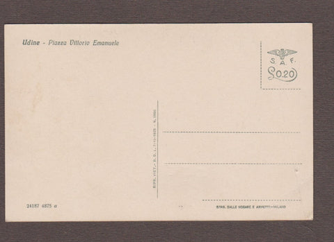AK Udine - Piazza Vittorio Emanuele. Ungelaufen. Kleinformat. Verlag: S.A.F. Zustand: linkes unteres Eck geknickt und dort etwas bestoßen.