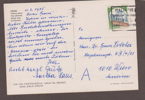 AK Udine. Veduta aerea. Gelaufen 1985. Großformat. Verlag: Cartolnova. Nummeriert: 116. Zustand: rechtes oberes Eck geknickt, sonst leichte Läsuren.