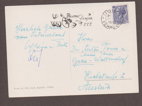 AK Udine - Via Mercato vecchio. (um1957) Gelaufen 1957.Großformat. Verlag: Aquileia. Zustand: gut.