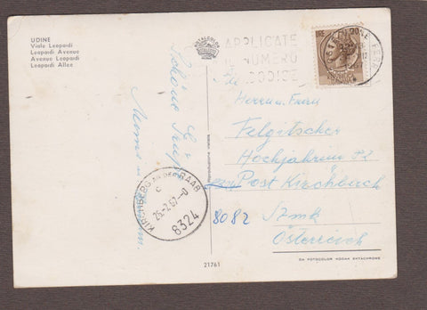 AK Udine. Viale Leopardi. Gelaufen 1967. Großformat. Nummeriert: 21761. Zustand: Ecken geknickt, Oberfläche leicht knittrig, Kugelschreiberpfeil etwas links der Mitte.
