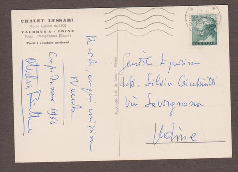 AK Valbruna. Chalet Lussari. Monte Lussari. Gelaufen 1965. Großformat. Verlag: Di Leno. Zustand: gut.