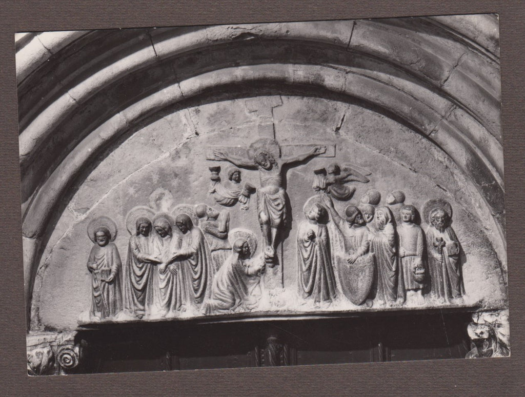 AK Venzone - Duomo. Lunetta del portale principale. La Crocifissione.