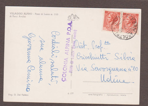 AK Villaggio Alpino - Piani di Luzza di Forni Avoltri. Gelaufen 1965. Großformat. Verlag: Del Fabbro. Nummeriert: 6-177. Zustand: gut.