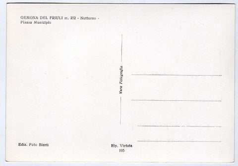 Gemona del Friuli. Notturno. Piazza Municipio. Ungelaufen. Großformat. Verlag: Foto Bierti. Nummeriert: 105. Zustand: gut, geringe Randläsuren.