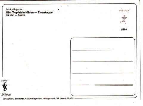 AK Eisenkappel. Obir Tropfsteinhöhlen. Ungelaufen. Großformat. Verlag: Schilcher. Nummeriert: 2/794. Zustand: gut.