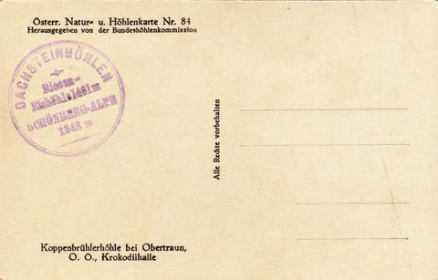 AK Koppenbrüller-Höhle bei Obertraun. Krokodilhalle. Ungelaufen. Kleinformat. Verlag: Österr. Natur- u. Höhlenkarte Nr. 84. Hrsg. von der Bundeshöhlenkommision. Zustand: gut.