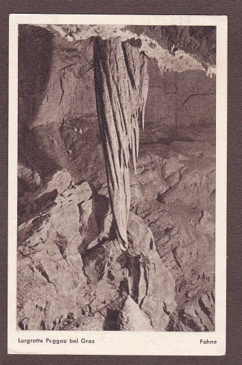 AK Lurgrotte Peggau bei Graz. Fahne. Gelaufen 1950. Kleinformat. Verlag: Dechant. Zustand: gut, Ecken leicht angeknickt, leichter Knick beim linken Rand in der Mitte.