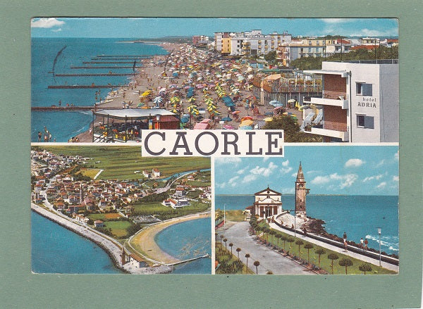 AK Caorle. Gelaufen 1963 in Caorle. Großformat. Verlag: GM. Nummeriert: 25. Zustand: linke Ecken geknickt, rechtes unteres Eck geknickt, leichte Randläsuren, etwas verschmutzt im linken unteren Bild im rechten unteren Eck.
