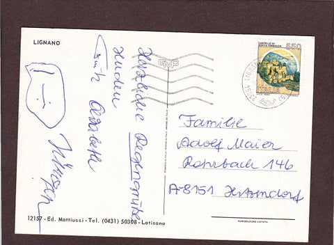 AK Lignano. Gelaufen. Großformat. Verlag: Matiussi. Nummeriert: 12157. Zustand: Knicke am rechten Rand oben, Knick am oberen Rand in der rechten Hälfte, sonst O.k.