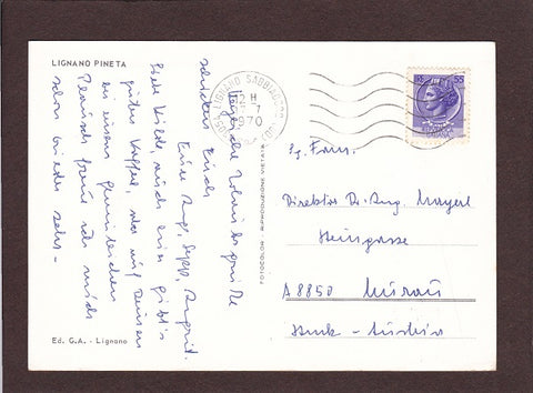AK Lignano Pineta. Gelaufen 1970. Großformat. Verlag: G.A. Zustand: gut, leichte Randläsuren.