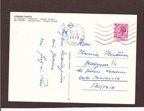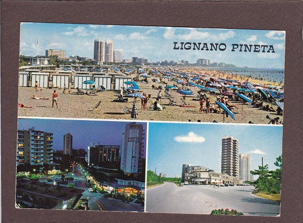 AK Lignano Pineta. Gelaufen 1973. Großformat. Verlag: Cigaina. Nummeriert: 28. Zustand: Knick über dem rechten oberen Eck, Ecken und oberer Rand angestoßen.