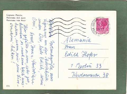 AK Lignano Pineta. Panorama del mare. Gelaufen 1973. Großformat. Nummeriert: 172. Zustand: gut.