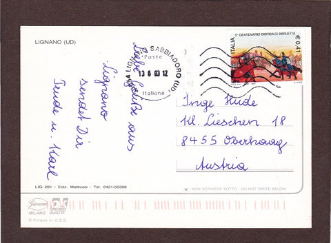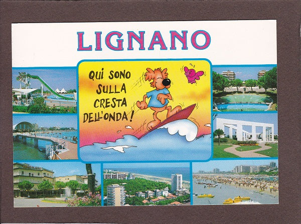 AK Lignano. Qui sono sulla cresta dell‘onda! Gelaufen 2003. Großformat. Verlag: Mattiussi. Nummeriert: 281. Zustand: gut.